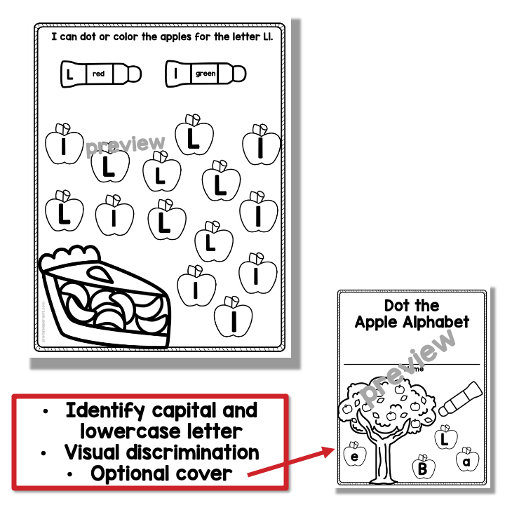 Your child will identify the capital and lowercase letters. Use dot markers (also called bingo daubers) or crayons.
